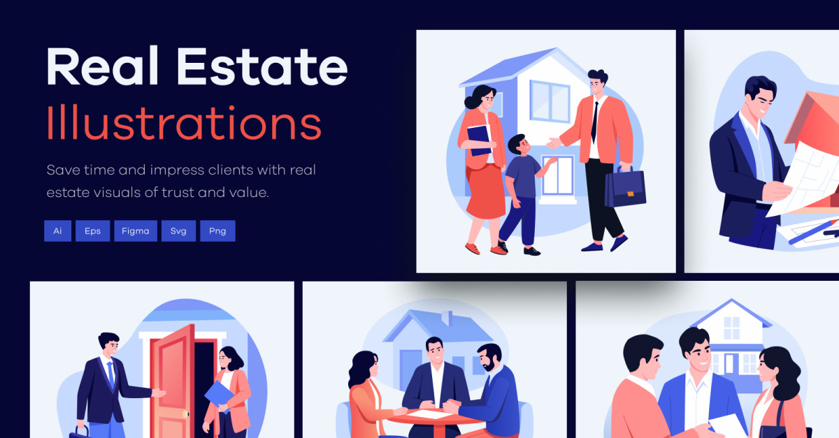 Step into the world of property deals and estate branding with this versatile Real Estate Sale Illustration Art Set. This collection captures the essence of residential, commercial, and industrial property types through stylish and easy-to-use visuals. Whether you’re building a website, designing print ads, or launching a real estate app, these illustrations bring your projects to life with professional polish and charm.
