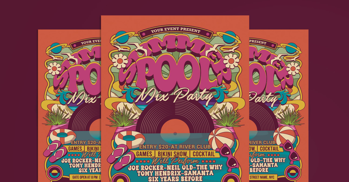 Best and unique flyer, poster, invitation design for your next event. Easy to modify, change colors, text.
