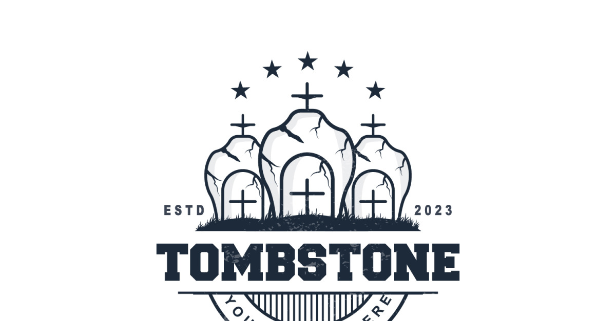 Tombstone Logo, Tomb Cemetery Cross, Vector Vintage Label, Retro Badge, Inspirational Design